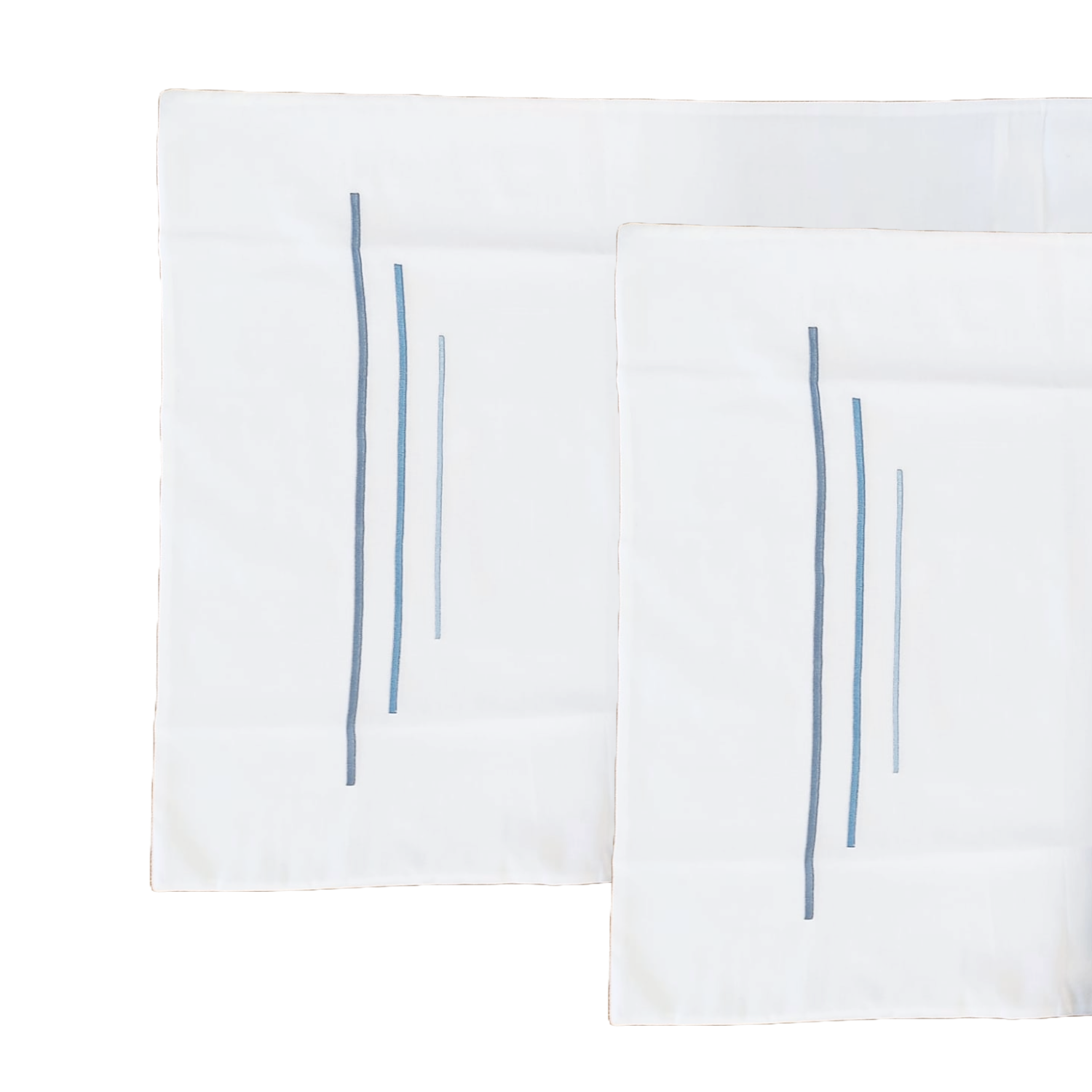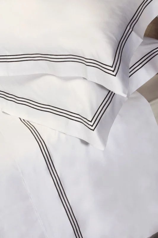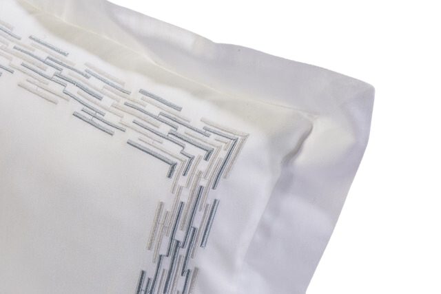Our Oxford 2-Line embroidery detail on our Moderno Sateen