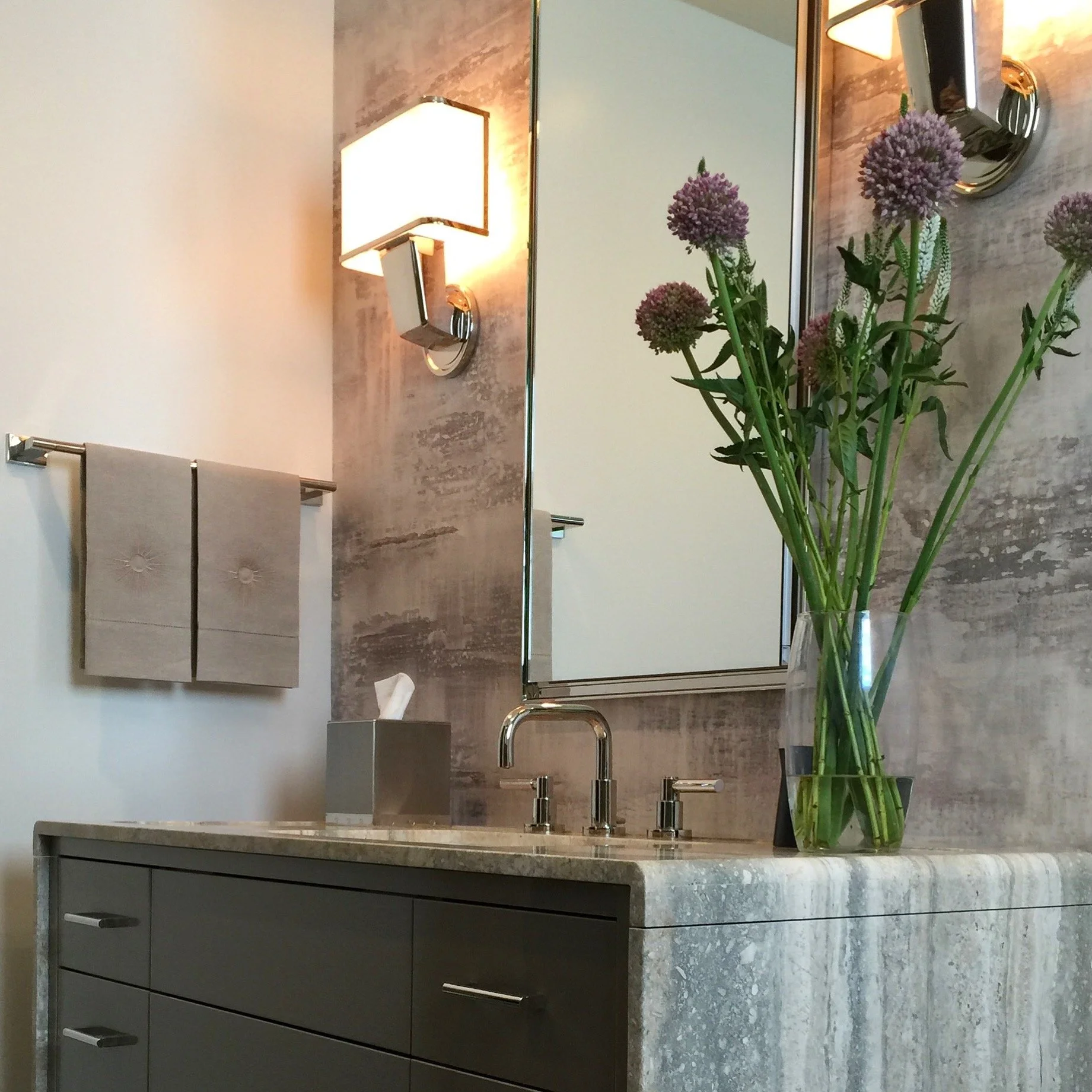 POWDER & GYM We offer a wide selection of quality guest towels for powder rooms and gyms. shown here is Vivre Luxe linen metallic guest towel with hemstitch detail